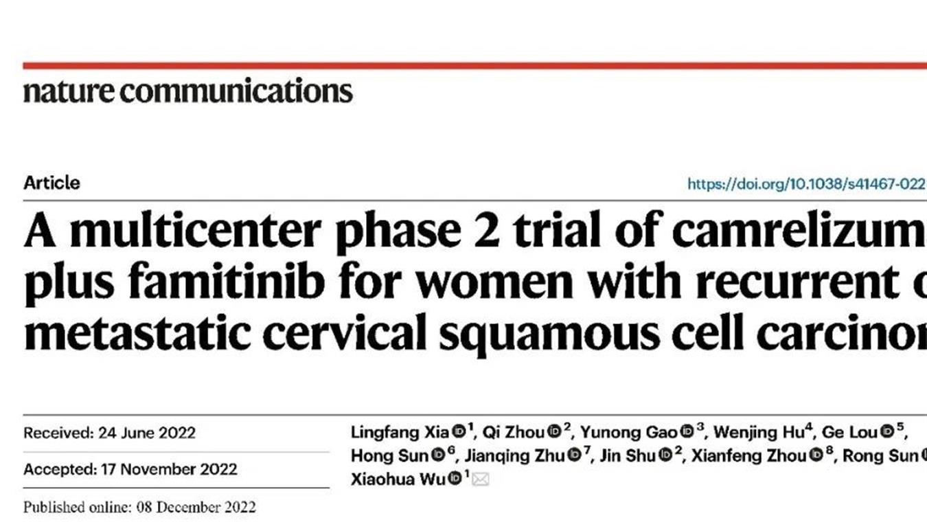 东升国际创新药卡瑞利珠单抗联合法米替尼用于复发或转移性宫颈癌研究结果荣登JCO